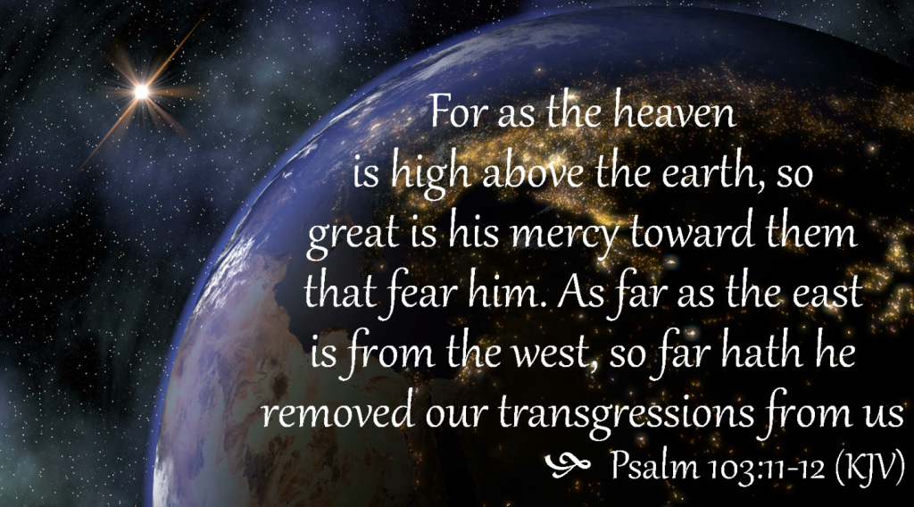 No matter how much we love our fellow human beings, nothing can even come close to God’s love for His people. Psalm 103:11,12 puts it like this: “as high as the heavens are above the earth, so great is his love for those who fear him; as far as the east is from the west, so far has he removed our transgressions from us.” This vertical and horizontal language reminds us that God’s love goes on and on; it reaches as high and as wide as we can possibly imagine.